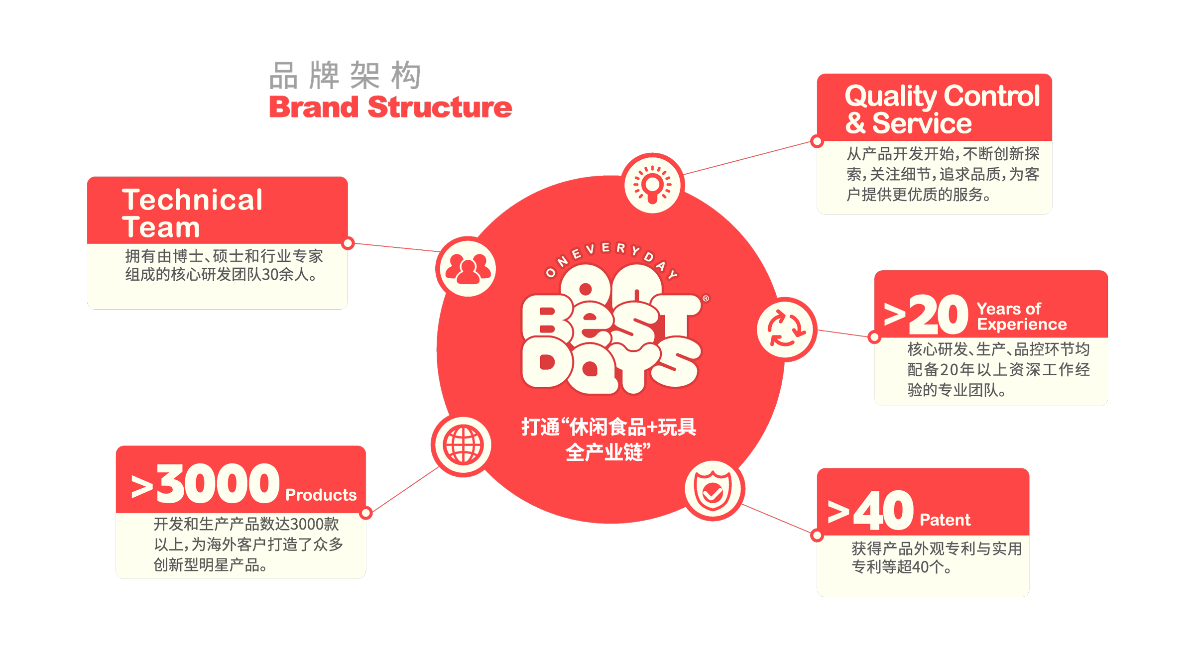 QUALITY/INNOVATION/SERVICE/EFFICIENCY is rooted in our tradition, we work to provide our customers with“One-Stop Candy+Toys”R&D and production solutions. We aspire to become a leading force in the candy toys industry and bring more fun and sweet to the consumers.